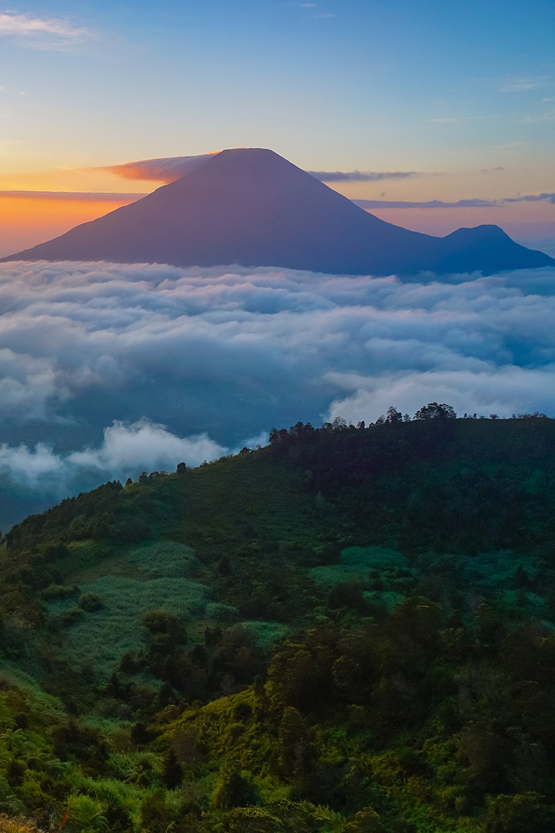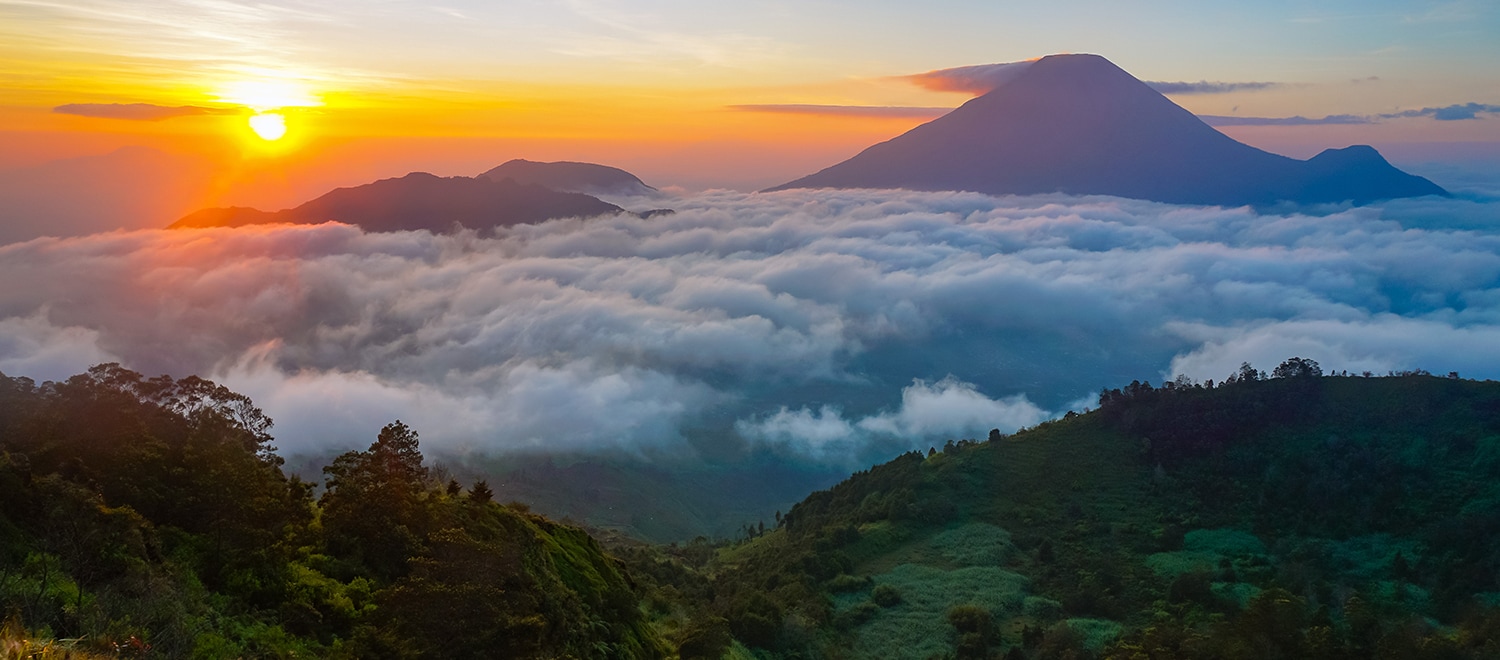 Terletak di antara Kabupaten Batang, Kabupaten Wonosobo, dan Kabupaten Kendal, Gunung Prau merupakan titik tertinggi di Dataran Tinggi Dieng. Selain memiliki medan pendakian yang cukup mudah untuk pemula, gunung ini juga menawarkan pemandangan yang hebat dari atas puncaknya. Di sini kamu bisa menyaksikan pesona matahari terbit atau terbenam berwarna keemasan.