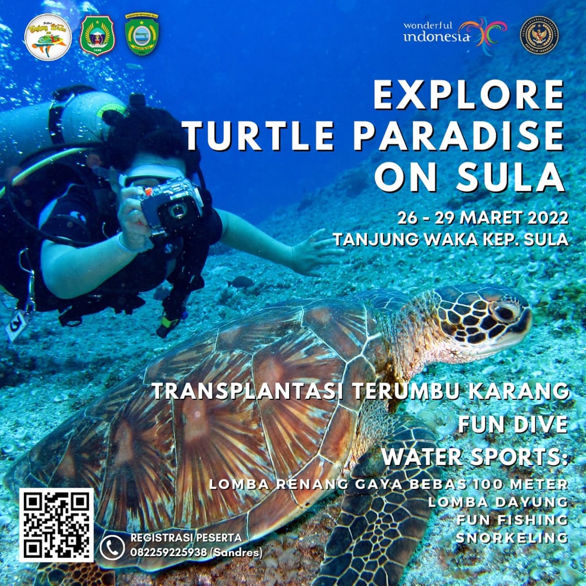 Nah, untuk kegiatan yang mendukung konservasi, bakal diadakan Transplantasi Karang dan Pelepasan Penyu. Siapa nih yang suka menyelam? FTW 2022 juga menyiapkan kegiatan Fun Dive & Water Sport. Untuk pencinta alam yang suka berpetualang, ada program Sula Historical Camping yang bakal dilangsungkan di Hutan Pantai Waka, Kepulauan Sula, Maluku Utara. FTW 2022 juga akan menyelenggarakan beberapa seminar internasional secara hybrid, lho. Dalam seminar itu bakal membahas tentang "Sustainable Coastal Tourism" dan budidaya madu serta budaya masyarakat Sula.
