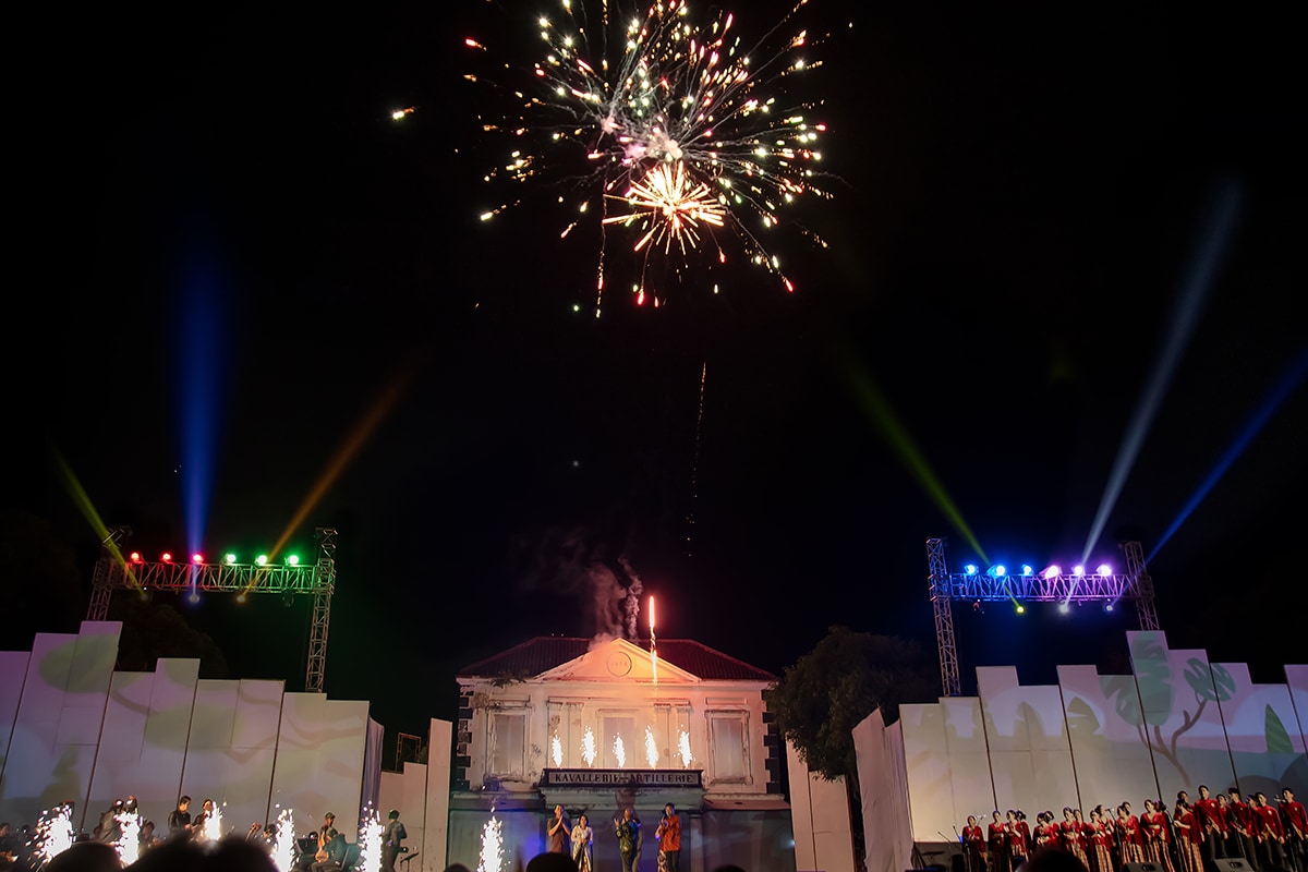 Panggung yang megah dan vibe yang nyaman adalah hal lain yang sukses memikat hati penonton. Nuansa bangunan tua di Pamedan Pura Mangkunegaran dikreasikan dengan tata panggung minimalis dan tata pencahayaan yang spektakuler.