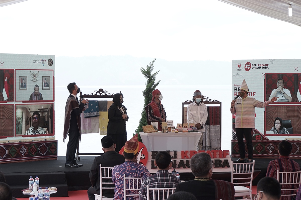 Agar dapat bangkit di masa pandemi, salah satu upaya Kemenparekraf dalam menghidupkan kembali sektor ekonomi kreatif adalah mengadakan program Beli Kreatif Danau Toba. Program 2021 ini bertujuan untuk mendorong UMKM di salah satu Destinasi Super Prioritas yaitu Danau Toba, Sumatra Utara.