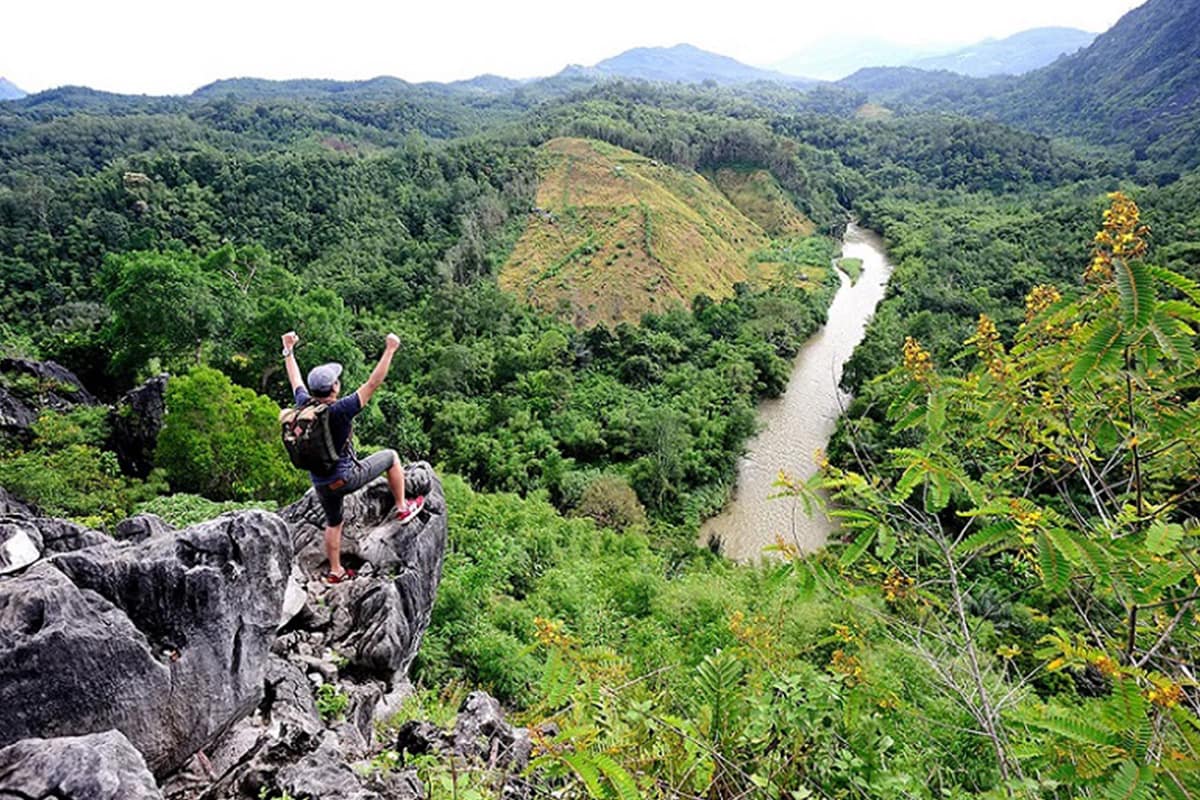 Wisata seru pertama yang direkomendasikan adalah mendaki ke Bukit Langara. Hanya dengan waktu pendakian rata-rata 45 menit, kamu bisa menikmati megahnya pemandangan alam Loksado dan sekitarnya. Bukit yang mayoritas terdiri dari batuan karst ini akan memberikan pendaki pengalaman yang cukup menantang adrenalin. Meskipun waktu pendakian termasuk singkat, kamu harus mempersiapkan peralatan mendaki yang cukup. Salah satu yang wajib digunakan adalah sepatu khusus mendaki. Tentu saja performa fisik dan tim pendakian yang solid adalah faktor penting lain. Ketika kamu sampai di puncaknya, dijamin mata akan dimanjakan dengan pemandangan Pegunungan Meratus yang membentang.