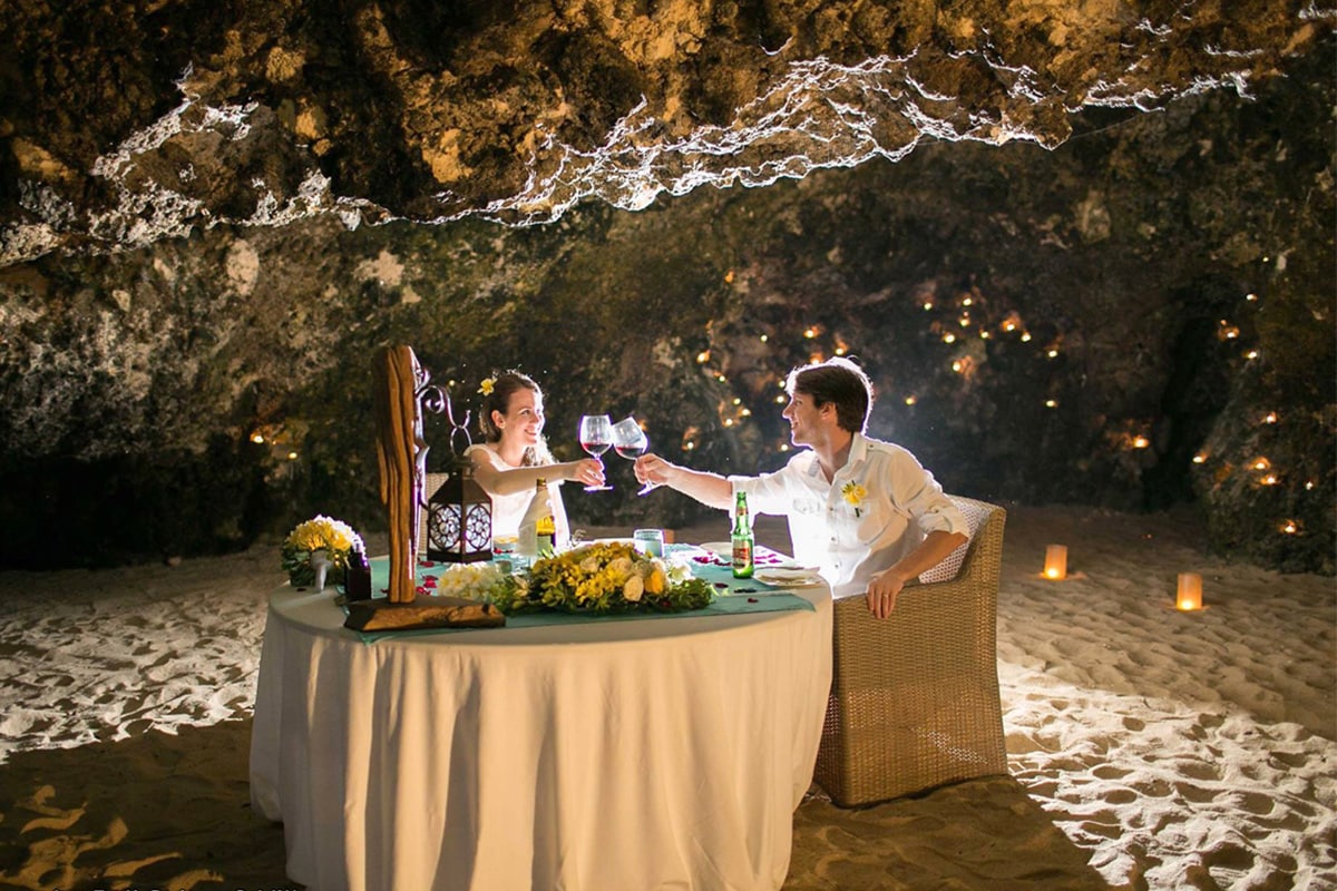 Dinner with your beloved in this restaurant is a one-of-a-kind romantic experience. Dinner is catered in a small cave in a private island, where a small amount of visitors will be accompanied by a servant. Inside the cave, which overlooks the beach, couples can enjoy a candle light dinner with various mouth-watering food with the sound of rolling waves and unparalleled ocean scenery.